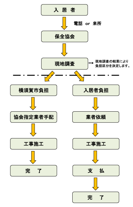 入居者自身で直接業者に発注した場合は、横須賀市負担の内容であっても修繕に要した費用はお支払いできませんのでご注意ください。